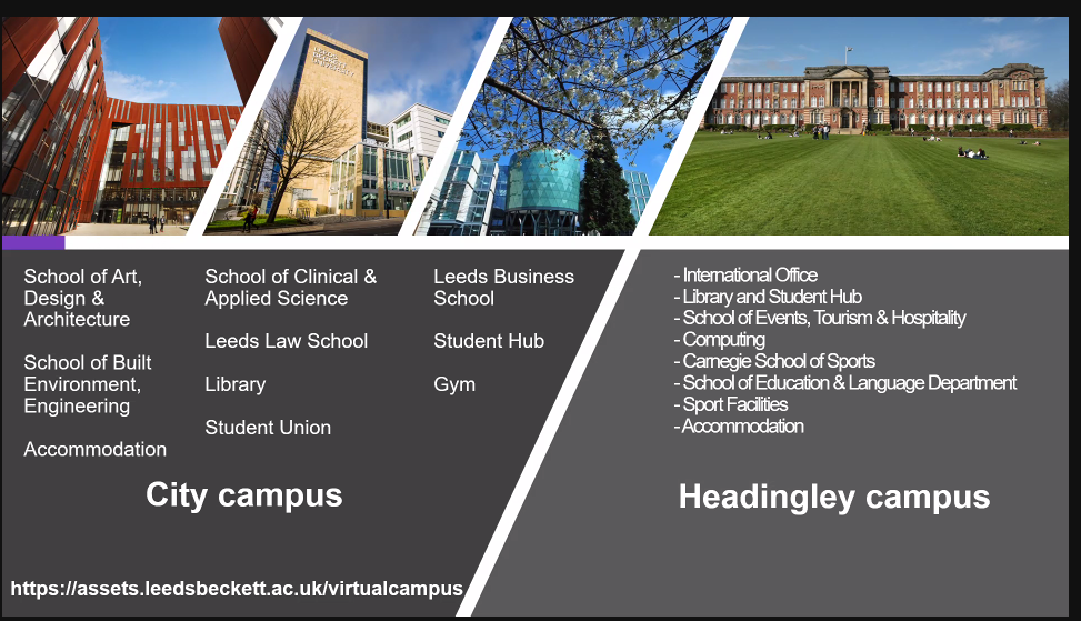 - Trường hiện có 2 cơ sở giảng dạy khác nhau. Hai cơ sở cách nhau 15 phút di chuyển bằng xe bus: Headingley và City Campus
